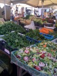The Campo is now home to all manner of vegetation besides flowers. It is the site 6 days a week (taking a rest on Sunday) to a wonderful farmers market. Filled with familiar and not so familiar veggies. All sorts of curious greens. And industrious vendors. I saw a man today patiently cutting the ends off green beans — about 4 at a time — and tossing them into a bowl of water. Dinner for some busy Roman mama who doesn’t have the time to string her own.