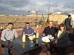 I had the unexpected pleasure to discover I was in Rome with one of my best friends in the world — who happens to be a priest. He was in town, staying at his Alma Mater in centro storico. We started our evening with gin and tonics on the rooftop, warm, inviting and surrounded by a stunning view of Roma. St. Peters was just behind me.