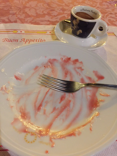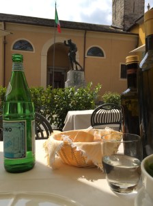 I return to the restaurant I’d rejected. Order a nice salad and a glass of vino bianco and ask the waitress. Scusi. Dov’è il centro? Oh madame, she answers: here! This is il centro!!