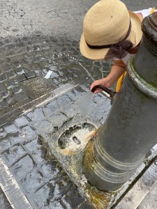 The water. Yes, Rome is still using its aqueducts which provide potable, cool, refreshing water to the masses. Particularly adorable are the nasonis. Singular: nasone. So called because they resemble-ish Big Noses. The uninformed wash their hands in the water. And fill their water bottles. Those in the know, however, place their finger at the end of the spout which then diverts the water into one, sometimes two, little holes at the top of the curve. E voilà, the nasone is converted to a drinking fountain. One of my absolute FAVE things in the world! Well. The world as *I* know it.