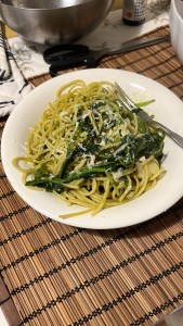 For the longest time while living here I was obsessed with finding out exactly what vegetable it was. I finally landed on dandelion greens. Not exactly like the ones we buy in the States – the ones here are more tender. Maybe young. Not sure.
