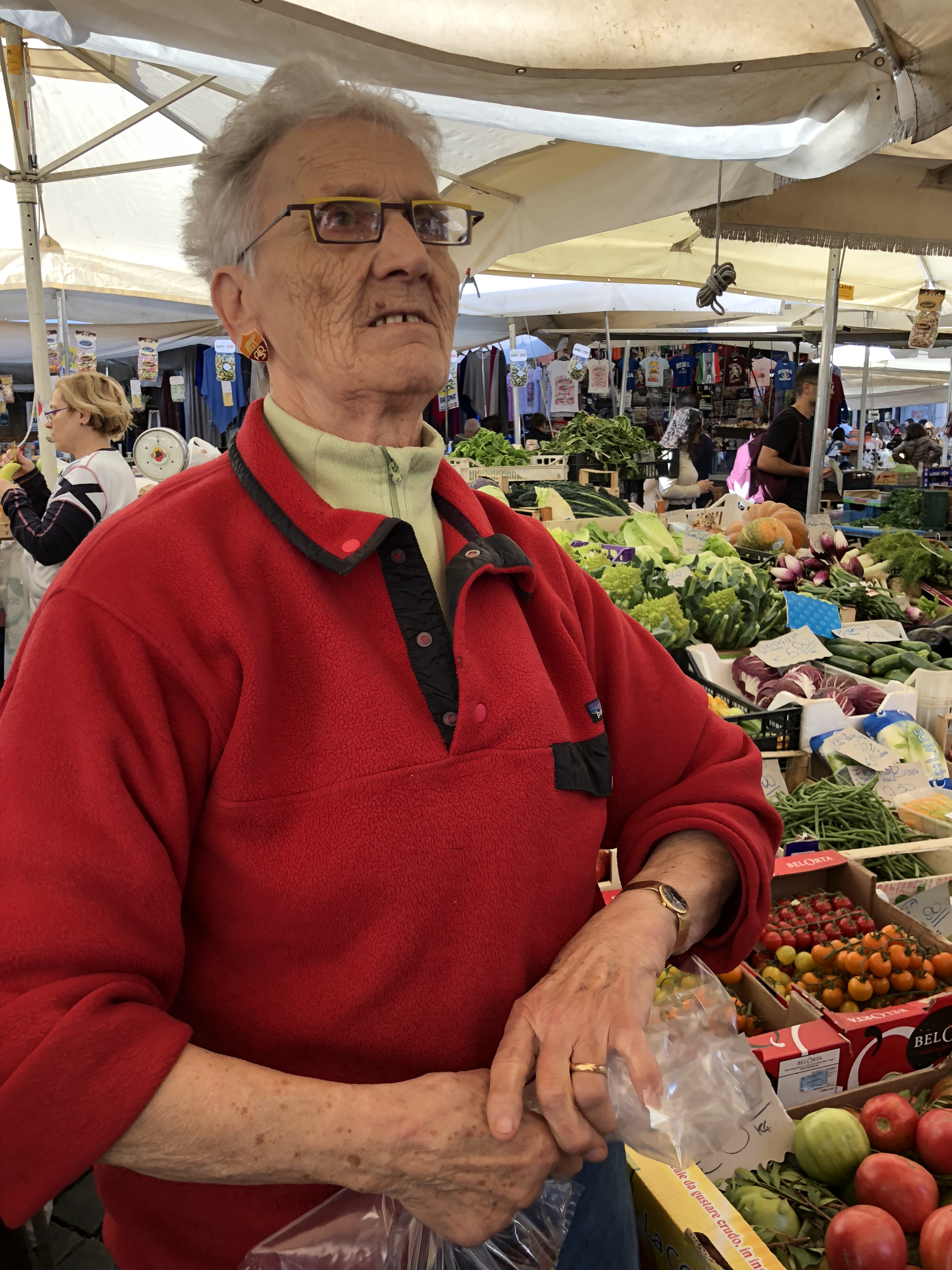 She’s a recurring figure in my stories of Rome. For seventeen years, I have been buying big, succulent Medjool dates from the stand where she works at the Campo dei Fiori. She’s got just a few teeth. And, she’s friendly enough. Date, date, signora.